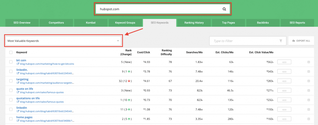 And it does exactly what you probably assume by now. It will show you the specific keywords that a website is ranking for.