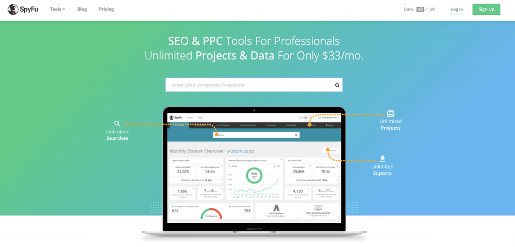 SpyFu’s data is collected from Google search results in the US and UK. The tool won’t show you full results outside of these countries, which just might be SpyFu’s biggest drawback.