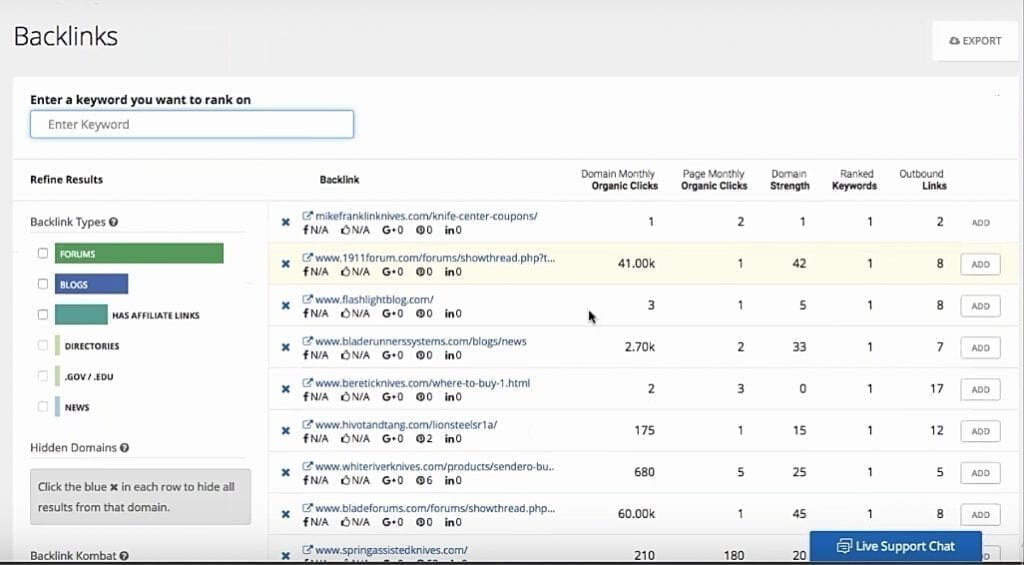 To top it off, you’ll gain an insight into social statistics, traffic estimates, and overall strength of each link. And to drill down to the most important links, you can use the filtering tool to sort through the mess.