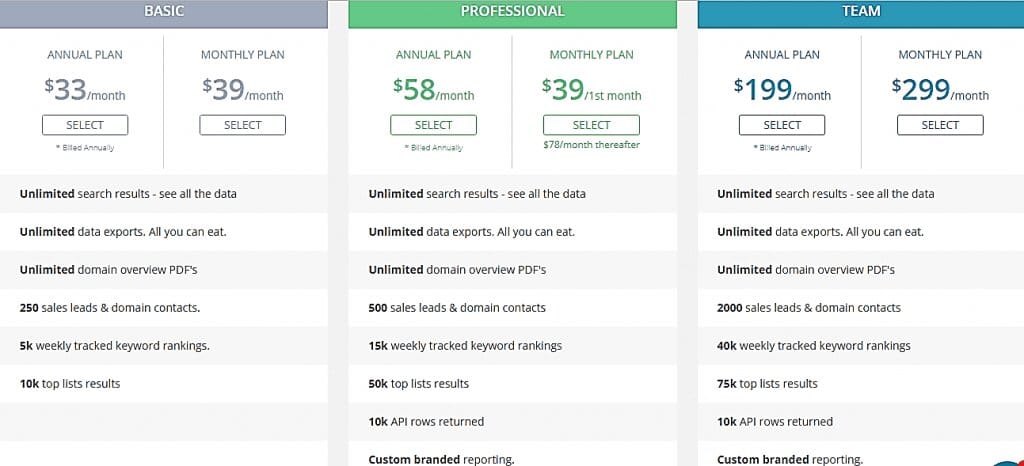 That said, there are three principal plans- Basic, Professional, and Team.